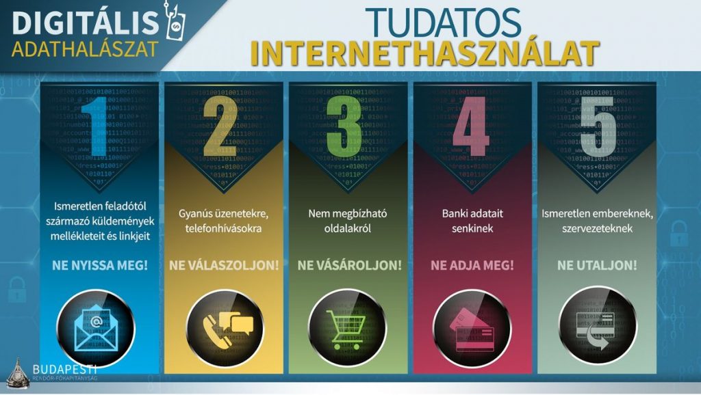 Az adathalászat veszélyére figyelmeztet – egyebek mellett tudatos internethasználatot javasol és azt, hogy a banki adataikat ne adják meg senkinek az emberek – a Budapesti Rendőr-főkapitányság (BRFK) és a Magyar Bankszövetség új tájékoztató kampányában.
