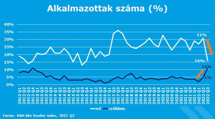 Kevesebb új munkavállalóval tervezik a következő évet a vállalkozások: felére esett vissza a munkaerőfelvételt tervezők aránya, miközben létszámleépítésben utoljára tíz évvel ezelőtt gondolkoztak ilyen sokan – derül ki a K&H kkv-k körében végzett kutatásából.
